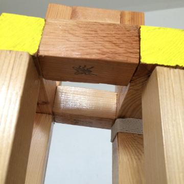 The idea was to place the chair at the end of the top of the table, as though it were thinking about jumping off. But in the construction of it, it somehow morphed into a minotaur-looking form. As I put it together I decided not to remove the printed numbers on the stock. Feeling as though I should acknowledge the numbers, I added them up in order and the total was seventeen. Then I wondered how many pieces were in the construction. Turns out there are seventeen. So, I stamped 17 on the back side of one of the posts. Then I thought I should write a haiku (seventeen syllables). It's a unique and satisfying experience to discover a work of art, while making it. The fly was added for grins.